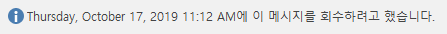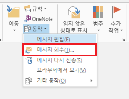 메뉴바에서 동작 클릭 후 메시지 회수 클릭